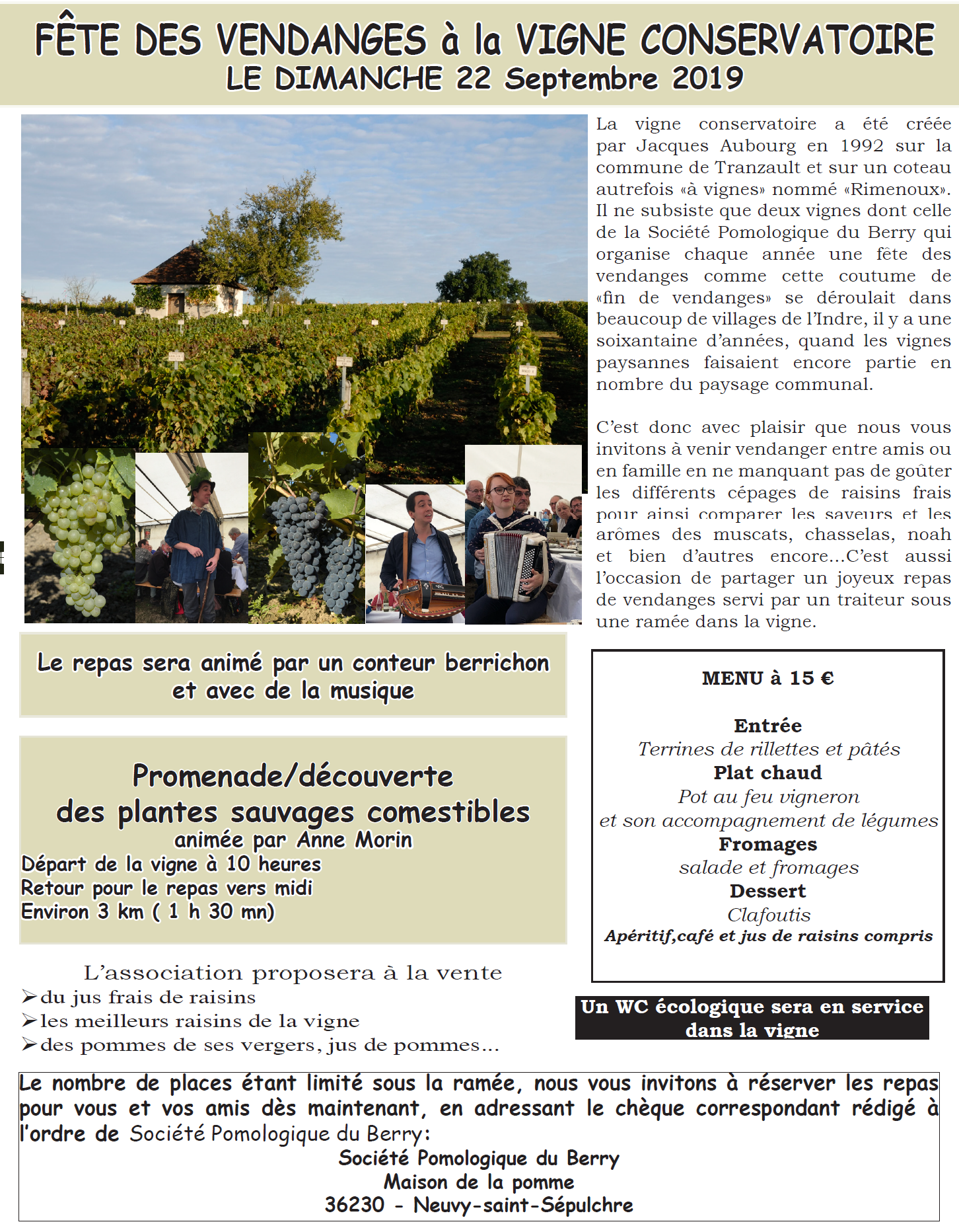 Fête des vendanges 2019 à la vigne conservatoire de tranzault The conservation wineyards at TRANZAULT 2019 |