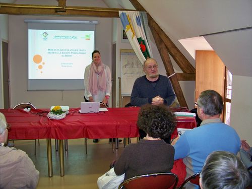Atelier de démonstration de greffage à la salle des fêtes. - dr La Société Pomologique du Berry (SPB) a organisé, dimanche, son annuelle Journée des Végétaux Champêtres. À cette occasion l'association a distribué des greffons des variétés de ses vergers conservatoires et des boutures de raisins de table de la vigne conservatoire. Les amateurs de fruits, à planter, à greffer, à grignoter (avec les fruits secs, sujet de la conférence de la SPB), ou à manger ont, une fois de plus, apprécié ce rendez-vous chaleureux. Même si les organisateurs comptent moins de visiteurs que les années précédentes, ces derniers sont toujours émerveillés par l'intelligente production de la SPB. Tant pour ses productions de qualités que ses conseils, qu'ils soient côté jardin, verger ou en cuisine (avec des livrets de recettes et de soins pratiques pour la culture). |